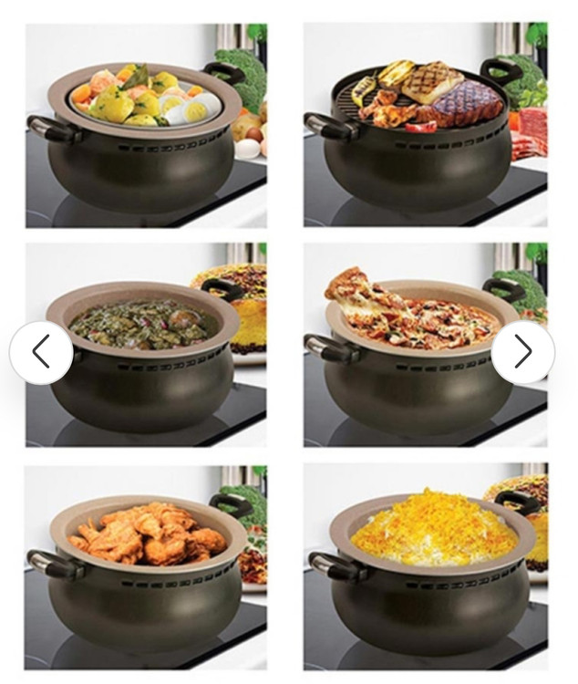 اختراعی بی نظیر شامل مجموعه کاملی از کارایی های تمامی دستگاهها و ظروف پخت و پز آشپزخانه در یک ظرف.